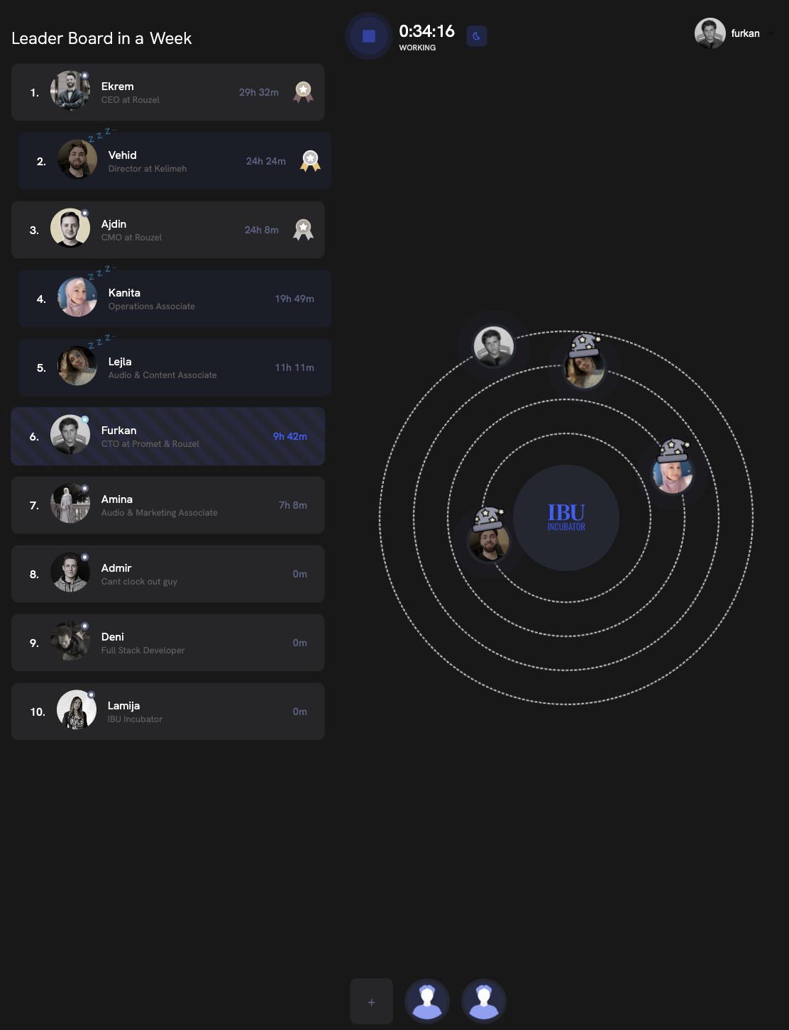 Ovi podaci se ažuriraju u realnom vremenu. Ako vidiš šarenu, animiranu pozadinu, to znači da trenutno radim remote, a ako je pozadina jednobojna, u kancelariji sam. Brojevi pored ikonica prikazuju koliko sam sati radio tokom vikenda.